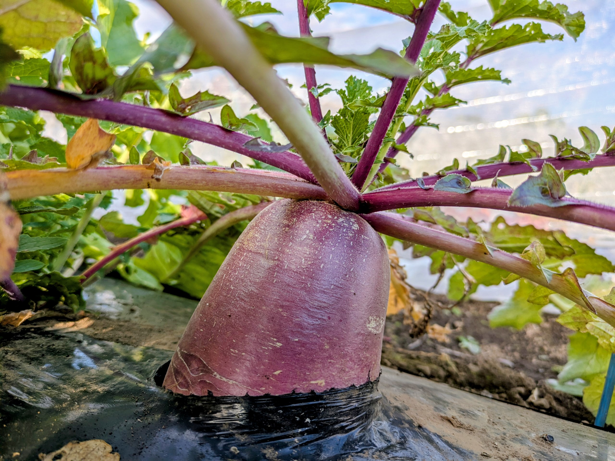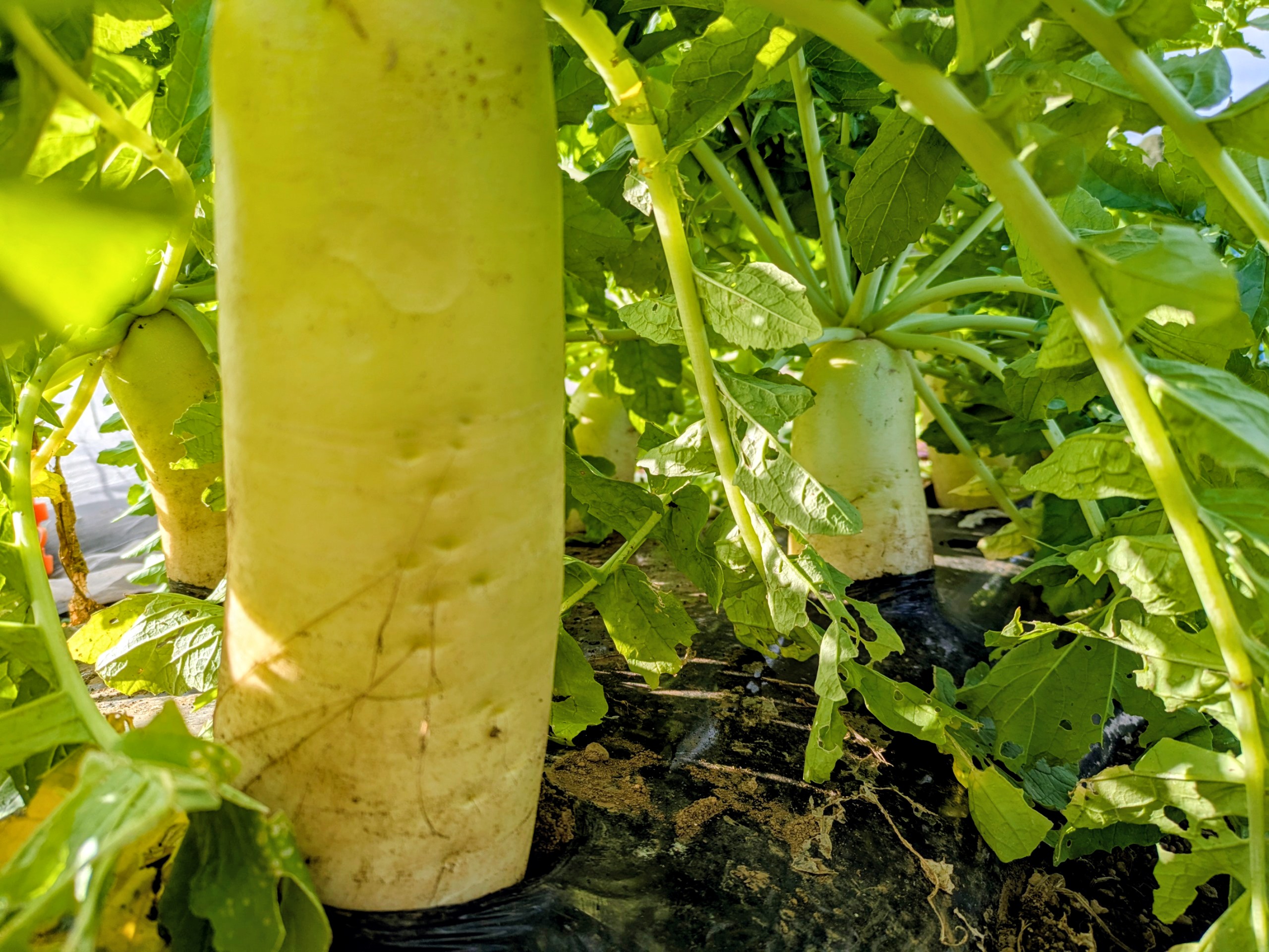 太く長くなり、土から飛び出てしまいそうです。割れたりすが入る前に収穫してください。葉っぱもビタミン豊富でとても美味しいです。