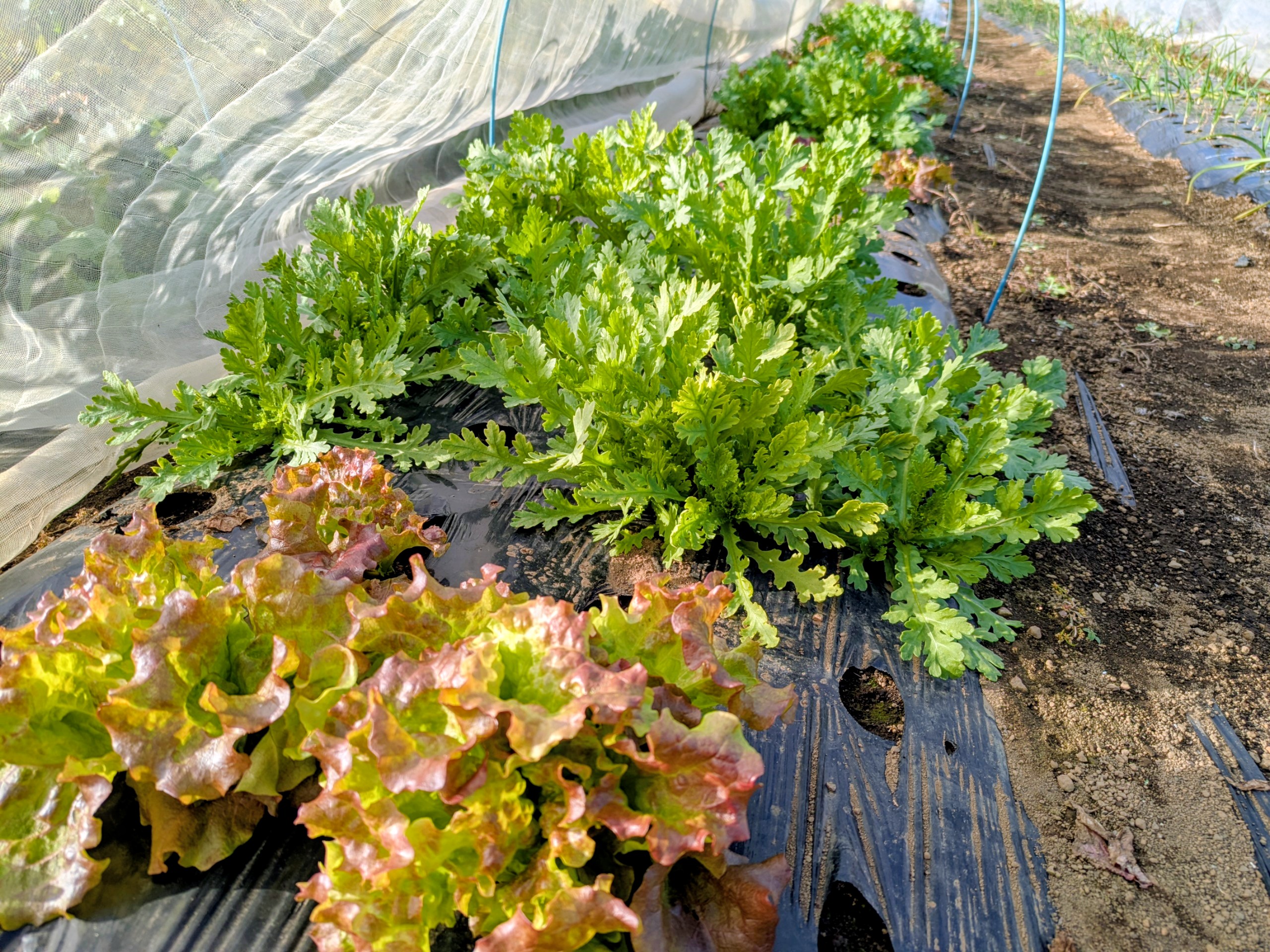 冬は保温をしながら育てます。根を残して少しずつ葉を収穫すると、長い間楽しめます。